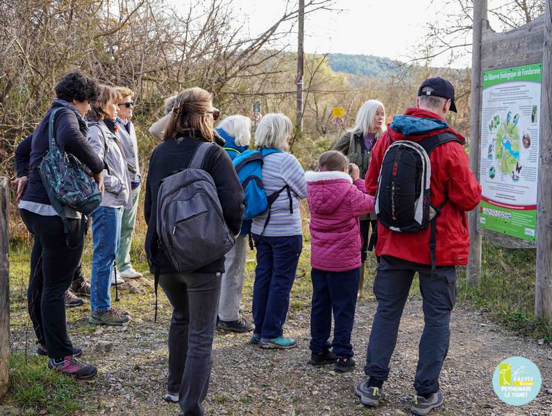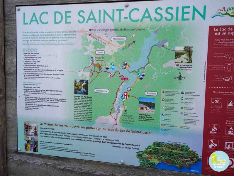 Et c’est devant le panneau pédagogique de la réserve que le voyage a commencé. Marjorie nous présente le lieu : le lac de St Cassien est artificiel. EDF a construit un barrage hydroélectrique sur le Biançon, une petite rivière temporaire qui traversait autrefois les vallées pour rejoindre la Siagne vers Tanneron. La mise en eau date de 1966 et depuis, cette retenue d’eau sert à produire de l’électricité, à alimenter en eau une partie du Var et le bassin cannois dans le 06. Il est devenu un atout pour un certain tourisme. Ce lac forme un curieux Y à trois branches, et Fondurane est située sur la branche la plus occidentale, où le Biançon devient lac. Cette réserve naturelle est gérée par le CEN PACA (Conservatoire d’Espaces Naturels). Elle a été protégée dès 1988 par un arrêté préfectoral de protection de biotope (APPB)– ce qui en fait une des premières du Var- mais cette zone de 43 hectares ne constitue que 1/10 de la superficie du lac.