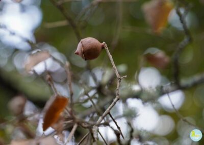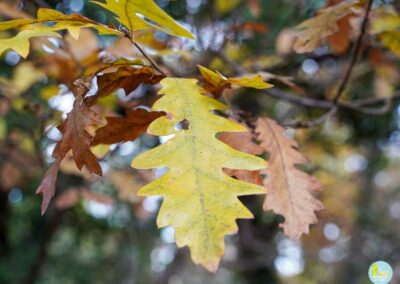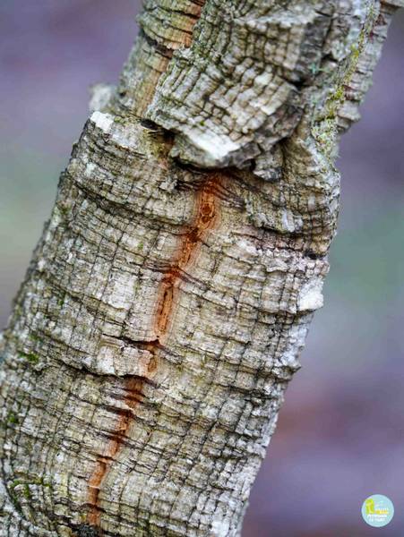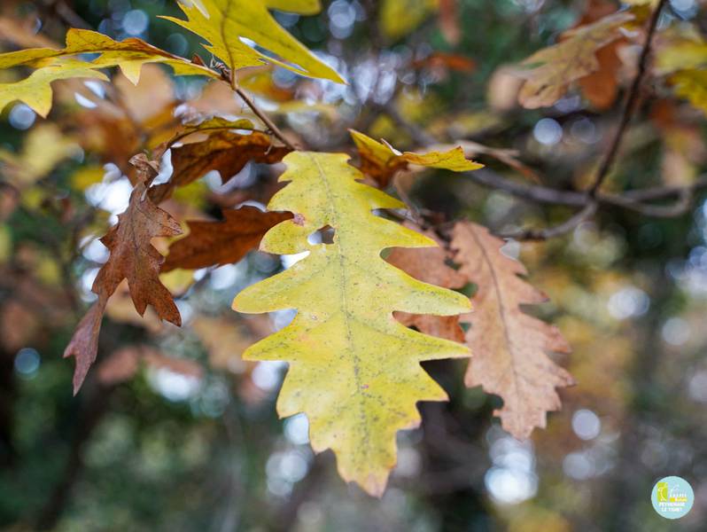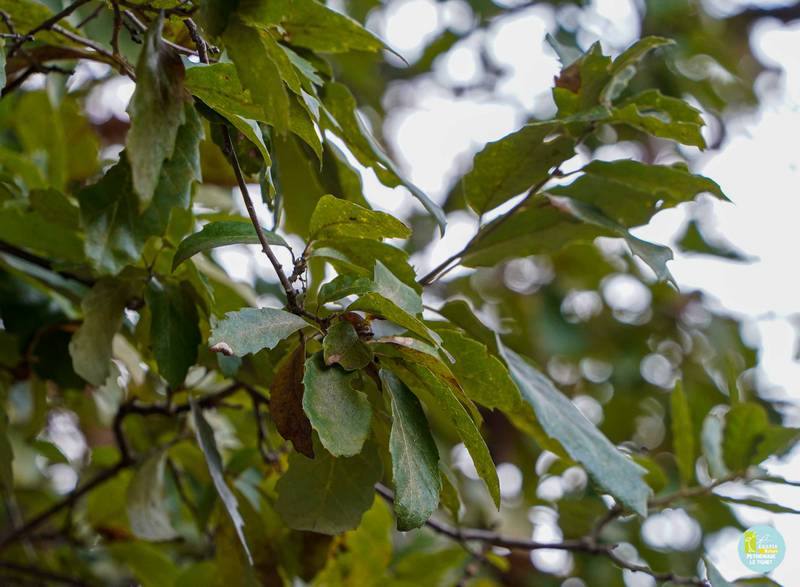 Plus loin, nous entrons dans la zone des chênes crenata et des chênes chevelus. Nous en rencontrerons à de nombreuses reprises sur notre chemin. Les Crenatas sont reconnaissables à leurs troncs recouverts d’un léger liège, et surtout à leurs feuilles crénelées, ils se dressent droit comme un i, assez haut, encore tout enfeuillé, et à leurs pieds, les chapeaux chevelus de leurs glands. Cette espèce est quasi endémique du lieu.