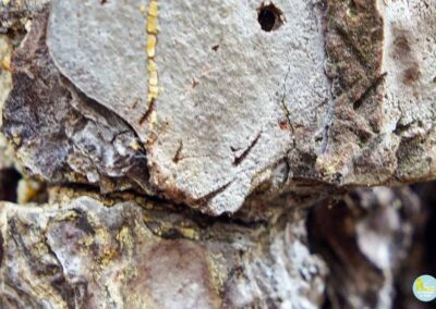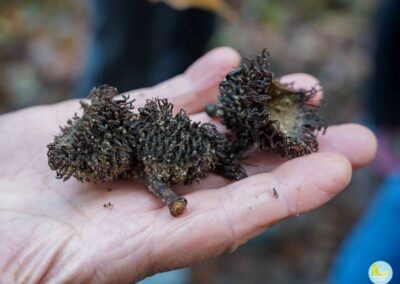 Quelques individus de-ci de-là, en Italie, en Croatie et quelques-uns en France mais c’est ici, vers Fondurane que la population est la plus importante. Plus loin, nous tombons sur des branches recouvertes de 3 gales différentes. Elles sont le fruit d’une réaction des chênes à la suite de la ponte d’un insecte apparenté à une guêpe. Qui dit 3 gales d’aspect différent… dit 3 guêpes différentes sur ce même chêne.