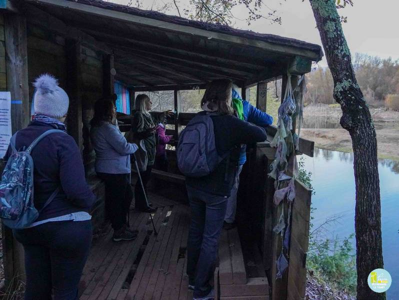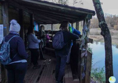 Un dernier arrêt à la cabane d’observation des oiseaux en bien mauvais état. Des panneaux nous renseignent que les lieux vont être réhabilités et restaurés sous peu. Au passage, Marjorie nous fait remarquer que la célèbre roselière en face a quasiment disparu, à la suite des baisses du niveau du lac trop longues ses dernières années ; niveau géré par EDF. Nous apercevons un vol de mouettes rieuses et deux aigrettes garzettes, quelques corneilles noires et un pinson des arbres.