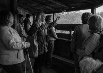 La lumière baisse encore un peu plus sur le lac et il est temps de rentrer. Un dernier vol de grands cormorans, puis comme pour nous dire au revoir, une grande aigrette passe près de notre groupe. « Vous avez de la chance, lance Marjorie, ce n’est pas commun d’en voir une ! »